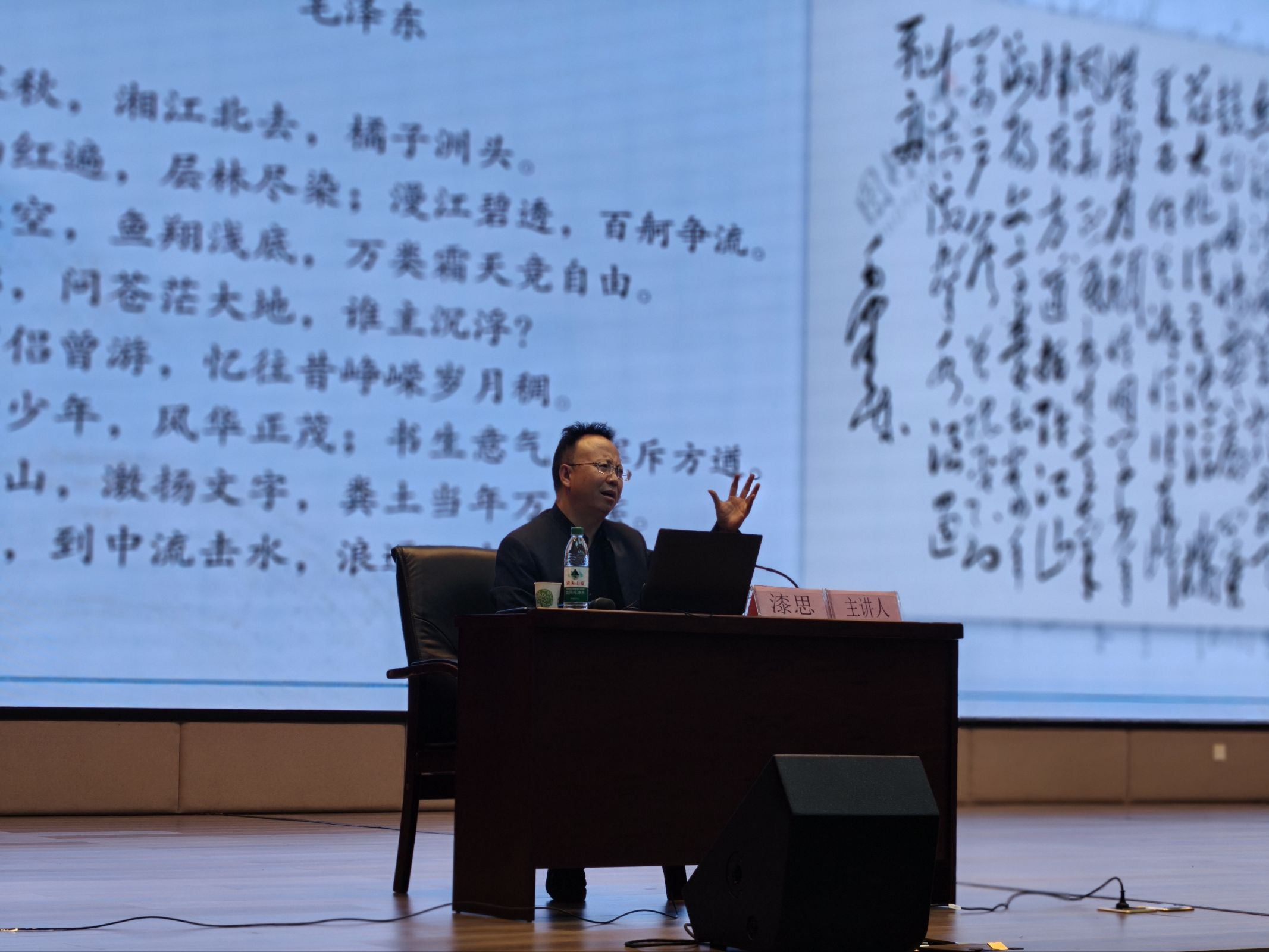 常务副院长漆思教授担任主讲人,讲座主题为《诗文思想之光——毛主席诗词赏析与毛选首卷导学》。换妻色情