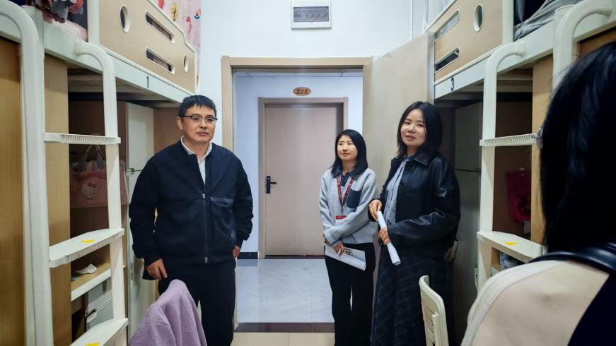 本次活动聚焦于宿舍学习氛围、卫生安全、装饰文化三个关键领域,对各宿舍进行现场评选。在实地考察过程中,杜剑副校长一行不仅细致入微地检查了各宿舍的实际情况,还与学生们进行了亲切的交流和慰问,详细询问了大家的日常生活、学习状况,以及在宿舍遇到的问题与需求,并耐心为学生答疑解惑、提供针对性的建议与指导。杜剑副校长在考察中强调,此次宿舍评比活动并非简单的评选,更是助力同学们改善宿舍生活环境、营造良好学习氛围的重要契机。他指出,对于在此次评比中表现突出的宿舍,应继续保持良好的习惯与风格,充分发挥模范带头作用;对于存在不足的宿舍,应认真总结经验教训,主动查找问题并及时改进,共同营造更加优良的宿舍环境。