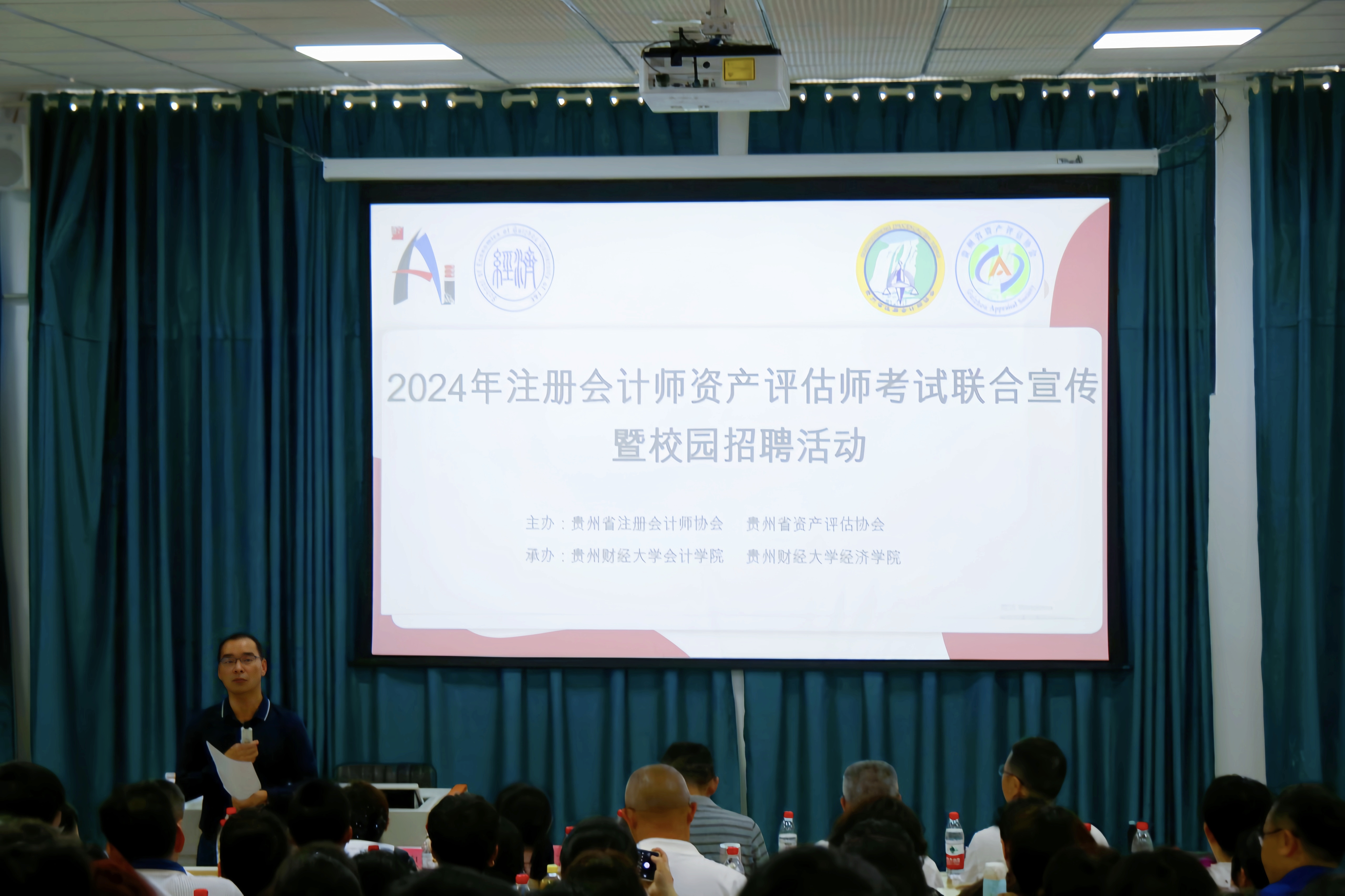 活动上,省注册会计师协会副会长王晓明首先作主题宣讲,他从如何准确理解注册会计师的职业定位、注册会计师行业社会定位、社会价值三个方面进行阐述,并鼓励青年学生积极加入注会行业,在专业领域中实现自身价值;之后,省资产评估协会副会长温志朝以“如何认识资产评估师”为题作分享,他详细讲解资产评估的基础知识、资产评估师考试的流程以及资产评估师的就业前景和发展空间,并为学生们提出职业生涯规划建议、就业经验。